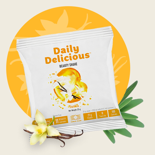 The protein in Daily Delicious Beauty Protein Mix, made from fresh skim milk, contains up to 93% pure protein.